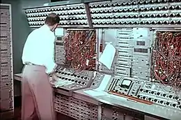 Starting in 1929, AC network analyzers were constructed to solve calculation problems related to electrical power systems that were too large to solve with numerical methods at the time.[16] These were essentially scale models of the electrical properties of the full-size system. Since network analyzers could handle problems too large for analytic methods or hand computation, they were also used to solve problems in nuclear physics and in the design of structures. More than 50 large network analyzers were built by the end of the 1950s.