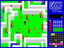 The maze is presented in a scrolling top-down view, using the same 3D effect Costa Panayi would later use in games like Tornado Low Level.