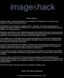 - "ImageShack hacked by anti-full disclosure movement". ZDNet.