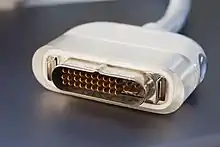 The Apple Display Connector (ADC) is a display and data connector developed by Apple, Inc. as a proprietary modification of the DVI connector. ADC combines analog and digital video signals, USB, and power all in one cable. It was used in later versions of the Apple Studio Display, including the final 17" CRT model, and most versions of the widescreen Apple Cinema Display, after which Apple adopted standard DVI connectors on later models.