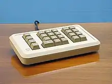 The Numeric Keypad II was Apple's first external keypad. Originally created by Micheal Muller at The Keyboard Company in 1977 at the request from Steve Jobs for the Apple II. In 1980, Apple purchased The Keyboard Company and became the Accessory Products Division.[12][13]