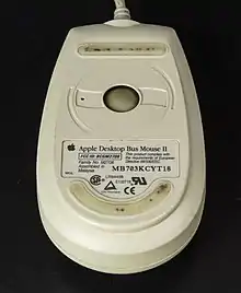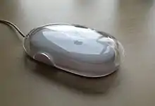 The Apple USB Mouse was Apple's first USB mouse. Released with the iMac in 1998 and included with all successive desktop Macs for the next two years, the round "Hockey puck" USB mouse is widely considered one of Apple's worst design mistakes.[17] Marking the switch from ADB, the colorful translucent mouse was a radical departure from its predecessors, down to a ball whose two-tone surface fluttered past the user's eyes as it spun under the mouse's translucent housing.