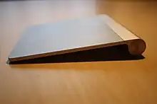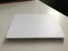 Apple released its first dedicated external trackpad, the Magic Trackpad, on July 27, 2010. It is a Bluetooth-only wireless trackpad, similar to the Magic Mouse. It is 80% larger than the MacBook trackpads of the time, and is designed to match the design of the Apple Wireless Keyboard.[33] The trackpad's clicking mechanism is activated by two circular feet located on the bottom edge of the trackpad.[33]
