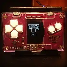 As well as the open-source Arduboy itself, a single-game version featuring an officially licensed (non-open) version of Tetris is also available.[14]