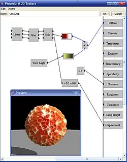 There are procedurally controlled options available of textures, materials, movements, lights and even some objects. Procedural editors provide a graphic interface, where you can combine input values, library patterns and mathematical expressions to create the desired output values.