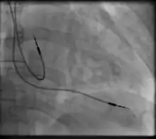 - ↑ Parsonnet V, Zucker IR, Gilbert L, Asa M (1962). "An intracardiac bipolar electrode for interim treatment of complete heart block". Am. J. Cardiol. 10 (2): 261–5. doi:10.1016/0002-9149(62)90305-3. PMID 14484083.