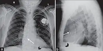 {{cite web}}: CS1 maint: unfit URL (link) - ↑ "Risks – Pacemaker". Mayo Clinic. Archived from the original on Feb 18, 2017. Retrieved 2016-12-01.