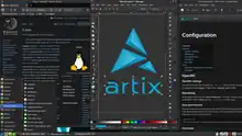 Artix initially offered two installation environments, a base command-line ISO image and the graphical Calamares installer based on LXQt desktop,[9] with an i3 version following later.[10] Those early versions featured the OpenRC[11] init system. The latest installation media are available in a variety of desktop environments like LXDE, XFCE, MATE, Cinnamon and KDE Plasma 5.[12] Additionally, two unofficial community editions featuring GTK and Qt desktops and a larger software base are offered, aiming at too-busy-to-customise or less experienced users.[13] All current installation media come in OpenRC, runit, s6, and dinit versions.