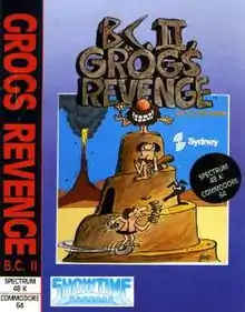 B.C. II: Grog's Revenge is a 1984 video game by Sydney Development for the Commodore 64, ColecoVision, Coleco ADAM, and MSX.[1][2] It is the sequel to B.C.'s Quest For Tires and is based on B.C., the newspaper comic strip by Johnny Hart. The game was advertised for the Atari 8-bit computers, ZX Spectrum, BBC Micro, and Amstrad CPC, but those ports were never released.[3]