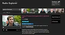 Radio Explorer was an online radio and playlist streaming application from the BBC originally developed by Jason Williams and launched on 29 May 2014.[1][3][4][5] It later appeared on BBC Taster, the BBC's portal for ideas and experimental projects, in March 2015.[6][7]