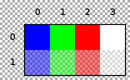 | 7Ah | 4 | FF 00 00 7F | 255 0 0 127 | Blue (Alpha: 127), Pixel (x=0, y=1) |