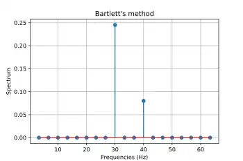 In time series analysis, Bartlett's method (also known as the method of averaged periodograms[1]), is used for estimating power spectra. It provides a way to reduce the variance of the periodogram in exchange for a reduction of resolution, compared to standard periodograms.[2][3] A final estimate of the spectrum at a given frequency is obtained by averaging the estimates from the periodograms (at the same frequency) derived from non-overlapping portions of the original series.