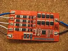 A battery management system (BMS) is any electronic system that manages a rechargeable battery (cell or battery pack), such as by protecting the battery from operating outside its safe operating area, monitoring its state, calculating secondary data, reporting that data, controlling its environment, authenticating it and / or balancing it.[1] Protection circuit module (PCM) is a simpler alternative to BMS.[2] A battery pack built together with a battery management system with an external communication data bus is a smart battery pack. A smart battery pack must be charged by a smart battery charger.