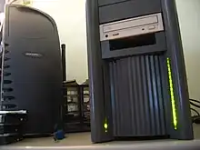 The BeBox is a discontinued personal computer from Be Inc., running the company's operating system, later named BeOS.[5] It has two PowerPC CPUs, its I/O board has a custom "GeekPort", and the front bezel has "Blinkenlights".
