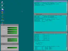 BlueEyedOS tried to create a system under LGPL based on the Linux kernel and an X server that is compatible with BeOS. Work began under the name BlueOS in 2001 and a demo CD was released in 2003.[64] The project was discontinued in February 2005.