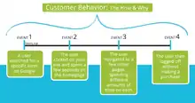 Behavioral analytics utilizes the massive volumes of raw user event data captured during sessions in which consumers use application, game, or website, including traffic data like navigation path, clicks, social media interactions, purchasing decisions and marketing responsiveness. Also, the event-data can include advertising metrics like click-to-conversion time, as well as comparisons between other metrics like the monetary value of an order and the amount of time spent on the site.[2] These data points are then compiled and analyzed, whether by looking at session progression from when a user first entered the platform until a sale was made, or what other products a user bought or looked at before this purchase. Behavioral analysis allows future actions and trends to be predicted based on the collection of such data.
