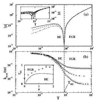 However, the existence of the Bose–Einstein condensation or the fit-get-rich phase does not depend on the temperature or β of the system but depends only on the functional form of the fitness distribution of the system. In the end, β falls out of all topologically important quantities. In fact, it can be shown that Bose–Einstein condensation exists in the fitness model even without mapping to a Bose gas.[17] A similar gelation can be seen in models with superlinear preferential attachment,[18] however, it is not clear whether this is an accident or a deeper connection lies between this and the fitness model.