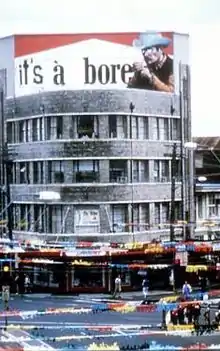 Billboard hacking or billboard hijacking is the practice of altering a billboard without the consent of the owner. It may involve physically pasting new media over the existing image,[1] or hacking into the system used to control electronic billboard displays. The aim is to replace the programmed video with a different video or image. The replaced media may be displayed for various reasons, including culture jamming, shock value, promotion, activism,[2] political propaganda,[3] or simply to amuse viewers.