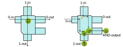 A billiard-ball computer, a type of conservative logic circuit, is an idealized model of a reversible mechanical computer based on Newtonian dynamics, proposed in 1982 by Edward Fredkin and Tommaso Toffoli.[1] Instead of using electronic signals like a conventional computer, it relies on the motion of spherical billiard balls in a friction-free environment made of buffers against which the balls bounce perfectly. It was devised to investigate the relation between computation and reversible processes in physics.