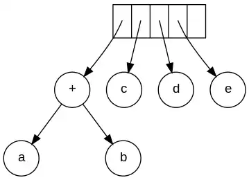 The input in postfix notation is: a b + c d e + * * Since the first two symbols are operands, one-node trees are created and pointers to them are pushed onto a stack. For convenience the stack will grow from left to right.