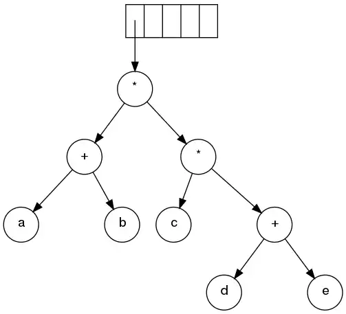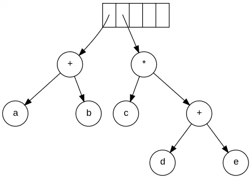 Now, a '*' is read. The last two tree pointers are popped and a new tree is formed with a '*' as the root.