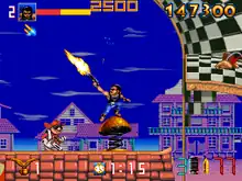 The player takes the role of Inguz who has to traverse toyland and shoot evil toys, collect power-ups, and defeat bosses to advance levels.[7]