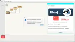 BlueJ was developed to support the learning and teaching of object-oriented programming, and its design differs from other development environments as a result.[1] The main screen graphically shows the class structure of an application under development (in a UML-like diagram), and objects can be interactively created and tested. This interaction facility, combined with a clean, simple user interface, allows easy experimentation with objects under development. Object-oriented concepts (classes, objects, communication through method calls) are represented visually and in its interaction design in the interface.