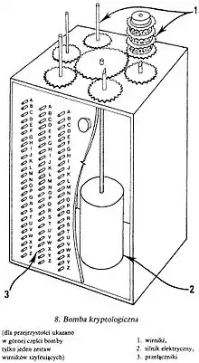 The bomba, or bomba kryptologiczna (Polish for "bomb" or "cryptologic bomb"), was a special-purpose machine designed around October 1938 by Polish Cipher Bureau cryptologist Marian Rejewski to break German Enigma-machine ciphers.