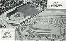 - 1 2 McBride, Raymond E. (August 27, 1952). "Ceremonies observe death of a ballpark". Milwaukee Journal. p. 1, part 2.