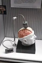 In 2002, Jens Naumann, also blinded in adulthood, became the first in a series of 16 paying patients to receive Dobelle's second generation implant, one of the earliest commercial uses of BCIs. The second generation device used a more sophisticated implant enabling better mapping of phosphenes into coherent vision. Phosphenes are spread out across the visual field in what researchers call "the starry-night effect". Immediately after his implant, Jens was able to use his imperfectly restored vision to drive an automobile slowly around the parking area of the research institute.[59] Dobelle died in 2004 before his processes and developments were documented, leaving no one to continue his work.[60] Subsequently, Naumann and the other patients in the program began having problems with their vision, and eventually lost their "sight" again.[61][62]
