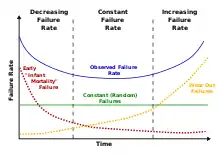 When the equivalent lifetime of the stress is extended into the increasing part of the bathtub-like failure-rate curve, the effect of the burn-in is a reduction of product lifetime. In a mature production it is not easy to determine whether there is a decreasing failure rate. To determine the failure time distribution for a very low percentage of the production, one would have to destroy a very large number of devices. By stressing all devices for a certain burn-in time the devices with the highest failure rate fail first and can be taken out of the cohort. Thus by applying a burn-in, early in-use system failures can be avoided at the expense (tradeoff) of a reduced yield caused by the burn-in process.