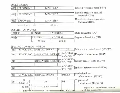 Even-tagged words are user data which can be modified by a user program as user state. Odd-tagged words are created and used directly by the hardware and represent a program's execution state. Since these words are created and consumed by specific instructions or the hardware, the exact format of these words can change between hardware implementation and user programs do not need to be recompiled, since the same code stream will produce the same results, even though system word format may have changed.
