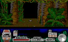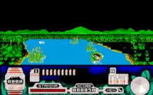 Butcher Hill is an action game developed and published by Gremlin Graphics in 1989.[1] In this game, the player controls a team of five soldiers who have to survive in the Vietnamese jungle[2] and kill as many enemies as possible. In the first part, the player's team is in a boat on a river with many rocks, mines and enemy fighters trying to sink it. If there is at least one remaining soldier at the end of the first part, the player enters the second part, a simulated 3D view of the jungle, shooting enemy soldiers and evading mines.