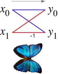 If one draws the data-flow diagram for this pair of operations, the (x0, x1) to (y0, y1) lines cross and resemble the wings of a butterfly, hence the name (see also the illustration at right).