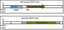 During and after a disc authoring the distribution of data on the CD-RW varies. The following areas are present: