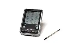 The Sony CLIÉ (creativity, lifestyle, innovation, emotion, formerly communication, link, information and entertainment) is a series of personal digital assistants (PDAs) running the operating system (OS) Palm OS, developed and marketed by Sony from 2000 to 2005. The devices introduced many new features to the PDA market, such as a jog dial (or jog wheel) interface, high-resolution displays, and Sony technologies like Memory Stick slots and ATRAC3 audio playback. Most models were designed and manufactured in Japan. The name was initially an attempt at a new coinage term, though it means tool in the Jèrriais language.