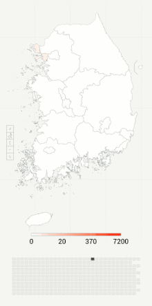 ![]() Coronavirus pandemic in South Korea over time (since 20 January 2020). Day not included in map Day included in map Last day included in map | |