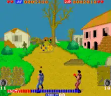 - Shootout, developed by TAD Corporation's related company Data East three years before Cabal.