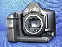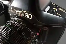The Canon T90, introduced in 1986, was the top of the line in Canon's T series of 35 mm Single-lens reflex (SLR) cameras. It is the last professional-level manual-focus camera from Canon, and the last professional camera to use the Canon FD lens mount. Although it was overtaken by the autofocus revolution and Canon's new, incompatible EOS (Electro-Optical System) after only a year in production, the T90 pioneered many concepts seen in high-end Canon cameras up to the present day, particularly the user interface, industrial design, and the high level of automation.