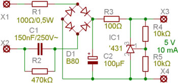 - ↑ Low cost PSU using a capacitor instead of a transformer (German Original)