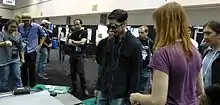 The castAR glasses combine elements of augmented reality and virtual reality.[19][20] After winning Educator's and Editor's Choice ribbons at the 2013 Bay Area Maker Faire,[21] the castAR project was successfully crowdfunded via Kickstarter.[5] castAR surpassed its funding goal two days after the project went live,[22] and raised over $1 million on a $400,000 goal.[20] castAR creates hologram-like images unique to each user[19] by sending an image from tiny projectors on the glasses into the user's surroundings[15] using a technology that Technical Illusions called "Projected Reality".[19] The image bounces off a retro-reflective[9] surface back to the wearer's eyes.[15][20] castAR can also be used for virtual reality purposes, using its VR clip-on.[19][15] Before the time of the 2017 company shutdown all Kickstarter funds had been paid back to the original backers. Along with the repayment, a coupon for a free set of the production AR glasses was given to each backer. This happened at the time of the 2015 Playground Global investment.