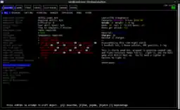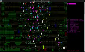 The game is made with ncurses to provide text based graphics; later a Simple DirectMedia Layer (SDL) version with graphical tiles became available.