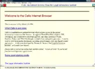 Cello is an early, discontinued graphical web browser for Windows 3.1; it was developed by Thomas R. Bruce of the Legal Information Institute at Cornell Law School. It was released as shareware in 1993.[7][8] While other browsers ran on various Unix machines, Cello was the first web browser for Microsoft Windows, using the winsock system to access the Internet.[9][10][11][12][13][14] In addition to the basic Windows, Cello worked on Windows NT 3.5[5][6] and with small modifications on OS/2.[15][16]