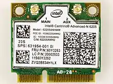 • Intel Centrino Advanced-N 6205 AGN mini-PCIe adapter [22] (codenamed Taylor Peak 2×2), or