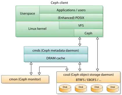 Ceph (pronounced /ˈsɛf/) is a free and open-source software-defined storage platform that provides object storage,[7] block storage, and file storage built on a common distributed cluster foundation. Ceph provides completely distributed operation without a single point of failure and scalability to the exabyte level, and is freely available. Since version 12 (Luminous), Ceph does not rely on any other conventional filesystem and directly manages HDDs and SSDs with its own storage backend BlueStore and can expose a POSIX filesystem.