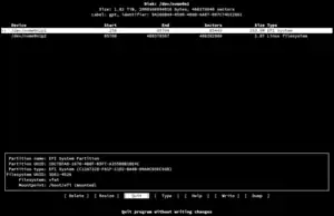 cfdisk is a Linux partition editor, similar to fdisk, but with a different, curses-based user interface. It is part of the util-linux package of Linux utility programs.