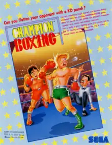 Champion Boxing (チャンピオンボクシング, "Boxing Champion") is a 1984 boxing sports video game developed and published by Sega for the SG-1000,[4] and later ported to the arcades,[5] only in Japan and Europe. It was Sega-AM2 founder and leader Yu Suzuki's debut creation, as well as that of Rieko Kodama.[1] In 1985, a successor of Champion Boxing titled Champion Pro Wrestling was released in the arcades, and ported to the SG-1000 and the MSX home computer the same year. However, this is a professional wrestling game instead of a boxing game.