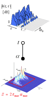 where is the TDOA (Time Difference of Arrival) of the wave-front . are DOA at the receiver and are DOD at the transmitter, is the Doppler shift.[1]
