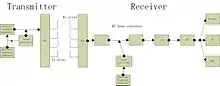 To characterize the propagation path between each transmitter element and each receiver element, engineers transmit a broadband multi-tone test signal. The transmitter's continuous periodic test sequence arrives at the receiver, and is correlated with the original sequence. This impulse-like auto correlation function is called channel impulse response (CIR).[5] By obtaining the transfer function of CIR, we can make an estimation of the channel environment and improve the performance.