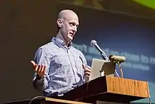 ![]() Miller speaking at Truman State University | |
